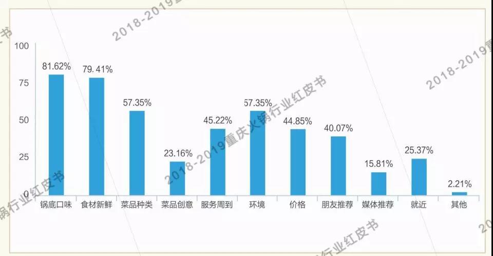據(jù)調(diào)查,鍋底口味是消費者是否復(fù)購的決定性因素,說明味道乃生存之本。對食材新鮮和菜品種類的要求的增加,說明市場消費理念也在逐漸轉(zhuǎn)變。